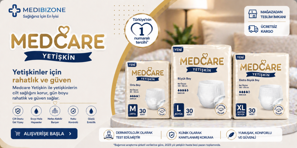 Medcare Premium Bel Bantlı Hasta Bezi 6 Damla Medium Orta Boy M Beden 30’lu 2 Paket 60 Adet