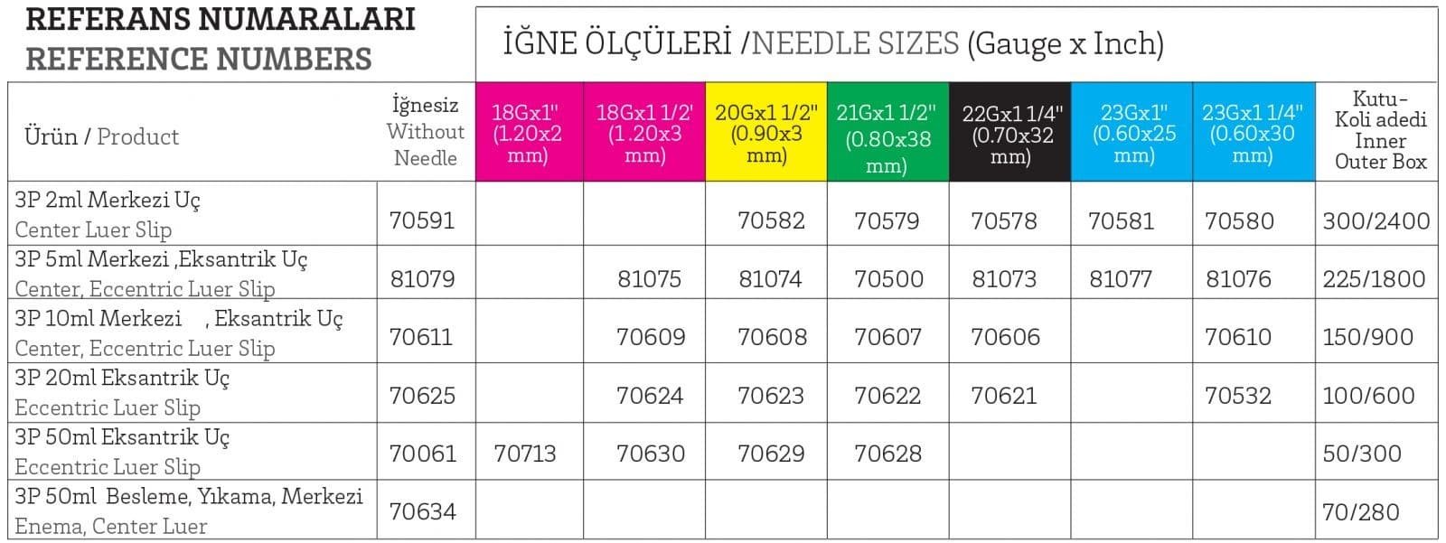 STERİL TEK KULLANIMLIK 3 PARÇALI ŞIRINGALAR