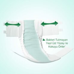 - Islaklık göstergesi sayesinde bez değişim zamanını kolayca fark etmeyi sağlarken, özel dokusu sayesinde ses yapmaz ve nefes alabilen yapısı ile konforlu ve rahat hissettirir.