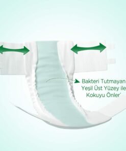 - Islaklık göstergesi sayesinde bez değişim zamanını kolayca fark etmeyi sağlarken, özel dokusu sayesinde ses yapmaz ve nefes alabilen yapısı ile konforlu ve rahat hissettirir.