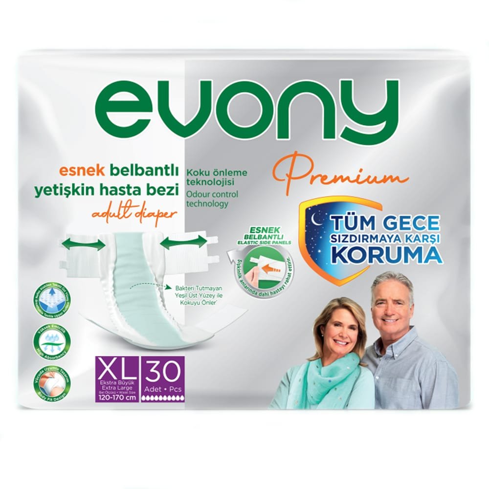 Evony Premium Esnek Bel Bantlı Yetişkin Hasta Bezi XLarge 30’lu Paket