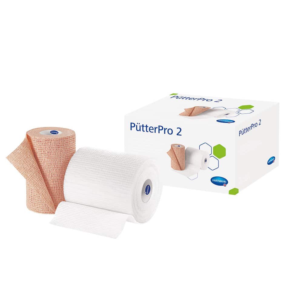 • İki bandajlı kompresyon sistemi PütterPro 2, doğal kauçuk lateks içermeyen bir dolgu bandajı ve yapışkan bir kompresyon bandajından oluşur.