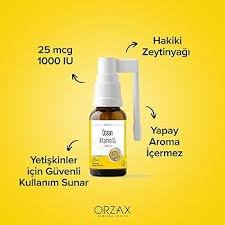 Her püskürtmede 1000 IU kolekalsiferol (D3) içeren formülü, hakiki zeytinyağı bazlı olduğu için yüksek biyoyararlanım sağlar.