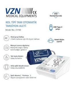 VZN LT-P30 Kol Tipi Dijital Tansiyon Aleti, özellikle yaşlı kullanıcılar ve evde tansiyon takibi yapan bireyler için geliştirilen, Türkçe sesli konuşma özelliğine sahip modern bir tansiyon ölçüm cihazıdır.
